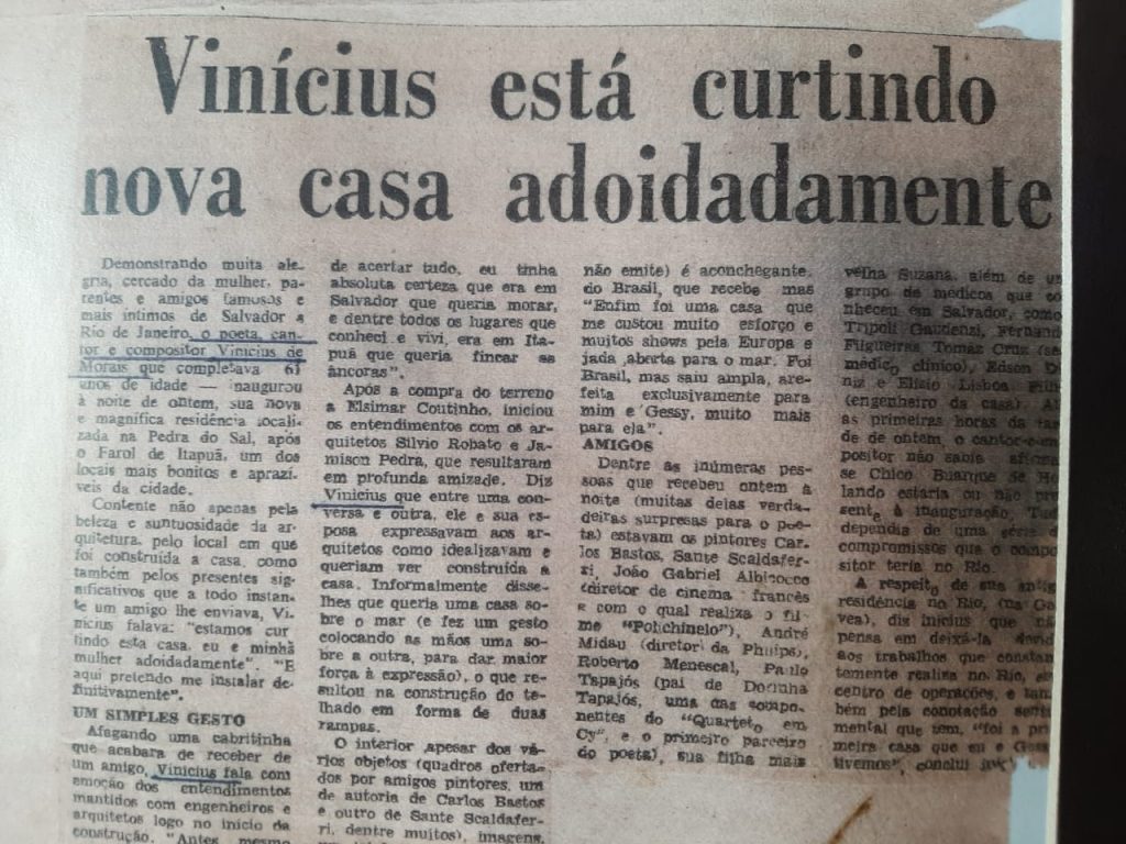 Vinicius sempre foi uma figura curiosa, instigante e sedutora não só com as palavras, mas também pelo modo como conseguia trazer para si pessoas das mais diferentes esferas sociais e idades. No entanto, em algumas situações, preferia o silêncio do lar e o som das ondas do mar que desabrochava permanentemente em frente à sua casa. Em outros momentos, corria dos olhares curiosos dos fãs e se escondia em um porão onde havia uma janelinha que dava em frente ao portão de entrada e de onde se via quem estava à espreita. Esse era o Vina… eternizou-se em páginas, lembranças e notas musicais… Dele nos resta sua obra e inspiração de uma vida intensa vivida em plenitude.
