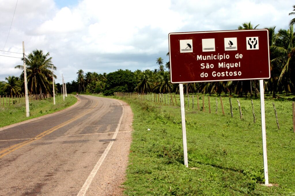 “Aqui se faz Gostoso” anuncia a placa na entrada do pequeno município praieiro de São Miguel do Gostoso, distante 120 km da capital potiguar. Localizado no litoral norte, no chamado “Pólo Costa Branca”, a cidade é ladeada de imensos coqueirais e vários quilômetros de praias mansas e quase virgens.