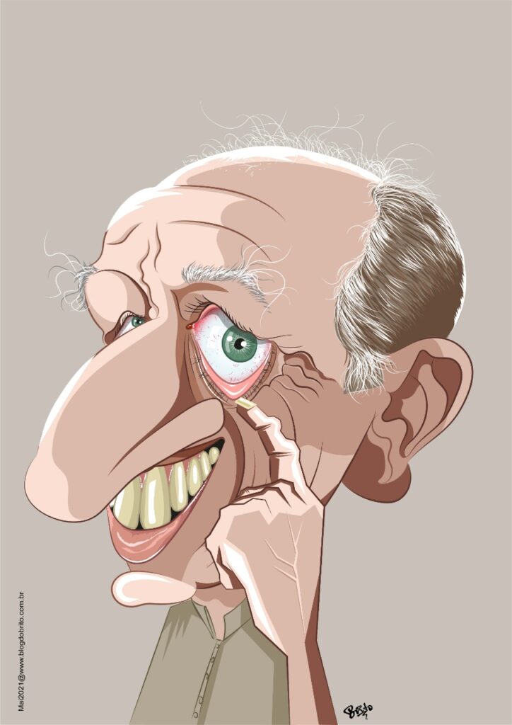 Millôr Fernandes, caricatura feita para o XVI Salão Internacional de Humor de Caratinga “Festival Jal & Gual” – 2021.