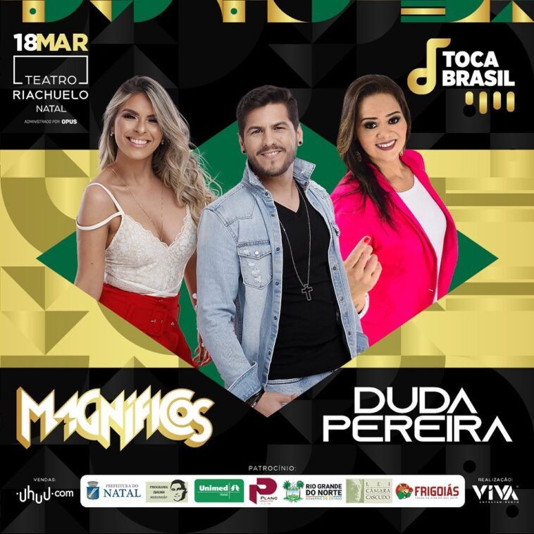 Nesta sexta-feira, dia 18 de março, o Teatro Riachuelo Natal será palco da terceira edição do Toca Brasil. Após o sucesso de duas edições em formato digital, o projeto – idealizado pela Viva Entretenimento – terá esse ano a sua edição presencial. A programação especial será às 21h com um super show da banda Magníficos e da cantora Duda Pereira e Forró Não Para.