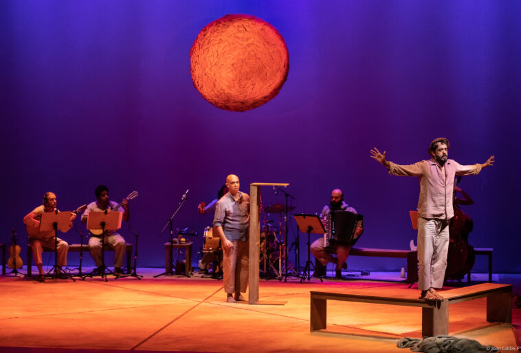 Essa realização profissional como protagonista de uma grande produção aqui em São Paulo, né? O Morte e Vida Severina tem uma história icônica de premiação internacional e a gente estreou no mesmo palco 56 anos depois e eu ter sido agraciado, escolhido entre centenas de candidatos para viver o personagem principal é um sentimento de… sei lá de… eu posso dizer de abertura de um novo ciclo na minha carreira e também o resultado de muito trabalho. São quase 20 anos que eu sigo assim trabalhando, não para chegar nesse lugar, mas de emprestar o meu corpo, minha voz e minha alma para esse ofício. Então, eu estou absolutamente realizado. A produção é maravilhosa. A gente estreou no último dia 16 e segue em temporada por dois meses e meio até o final de junho no Tuca, numa cidade em que a cultura está voltando a se movimentar de forma mais intensa depois da pandemia flexibilizar um pouco. Sei que isso ainda não terminou, mas a gente consegue agora ter mais circulação de pessoas com a vacina, né? Está um movimento bonito das pessoas voltarem ao teatro, as apresentações lotadas, os nossos ingressos com uma procura muito grande. E é isso. Foi uma identificação imediata em fazer parte desse projeto porque é falar de Nordeste, é João Cabral de Melo Neto, é um grande clássico, né? A gente tem mais dois potiguares na equipe, o diretor musical Marco França e a atriz Badu Moraes, que já mora aqui há cinco anos e é de Parnamirim e está arrasando como todo o elenco maravilhoso, outros nordestinos migrantes.