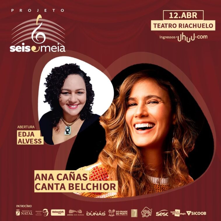 Nesta quarta-feira, dia 12, o Projeto Seis e Meia recebe no palco do Teatro Riachuelo Natal o espetáculo Ana Cañas Canta Belchior e para abrir a noite a cantora potiguar Edja Alvess.O show será às 19h. Os ingressos custam a partir de R$ 30,00 e estão à venda na bilheteria do teatro (de terça a sábado, das 14h às 20h) e no site uhuu.com.