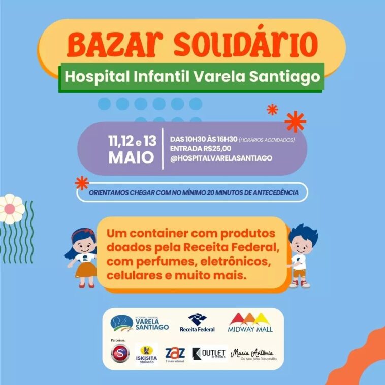 O Hospital Infantil Varela Santiago recebeu um contêiner de produtos da Receita Federal e nos próximos dias 11, 12 e 13 de maio vai realizar um bazar solidário com o objetivo de arrecadar fundos para manutenção e investimento nas ações de saúde realizadas na instituição.