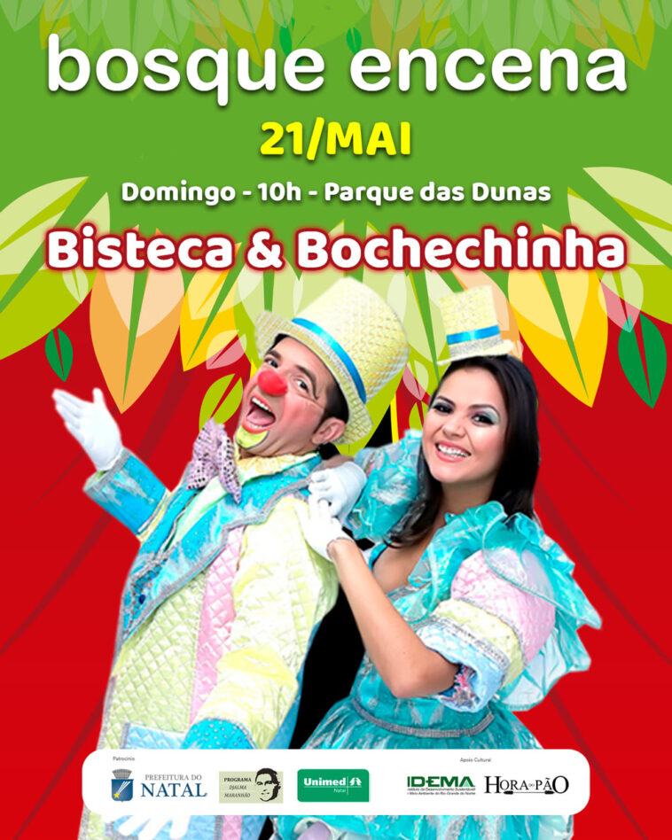 O Bosque Encena desse domingo (21) recebe os palhaços BISTECA & BOCHECHINHA, que vão se apresentar o espetáculo A ALEGRIA CHEGOU!