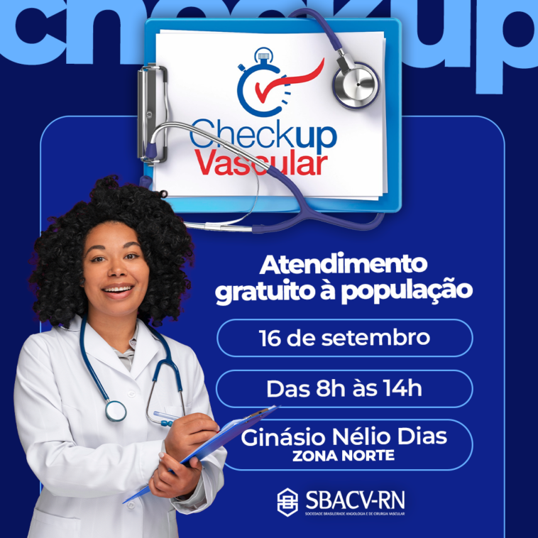A Sociedade Brasileira de Angiologia e Cirurgia Vascular, regional Rio Grande do Norte – SBACV/RN realiza no próximo sábado (16) , das 8h às 14h, no Ginásio Nélio Dias, na Zona Norte de Natal, o 9º Check-up Vascular. A campanha faz parte de uma ação da SBACV-RN e promove atendimento gratuito à população, com consultas médicas, prescrição de medicamentos e, nos casos necessários, encaminhamento para exames. Além de palestras sobre doenças vasculares, a importância do exercício físico e de uma boa alimentação. O número de fichas para atendimento é limitado.