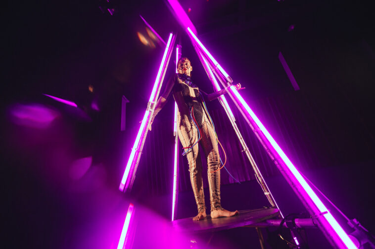 “SALTO” é uma adaptação distópica da fábula “Os Músicos de Bremen”, que também inspirou a tradução brasileira de Chico Buarque, “Os Saltimbancos”. A peça borra as convenções teatrais ao construir uma atmosfera retrô-futurista para trabalhar uma obra clássica. Ao utilizar da música eletrônica e da dança como elementos narrativos sinestésicos, “SALTO” cria um ambiente imersivo para o desenvolvimento da história, enriquecendo e pluralizando a experiência do público.